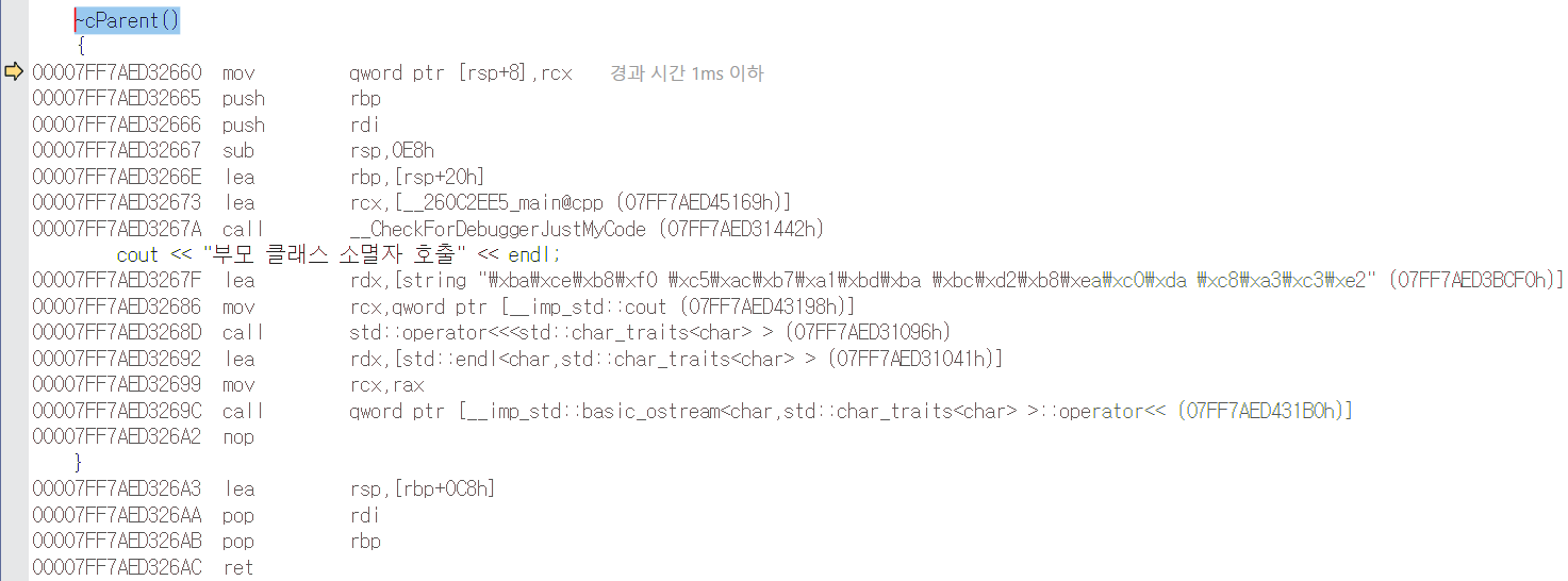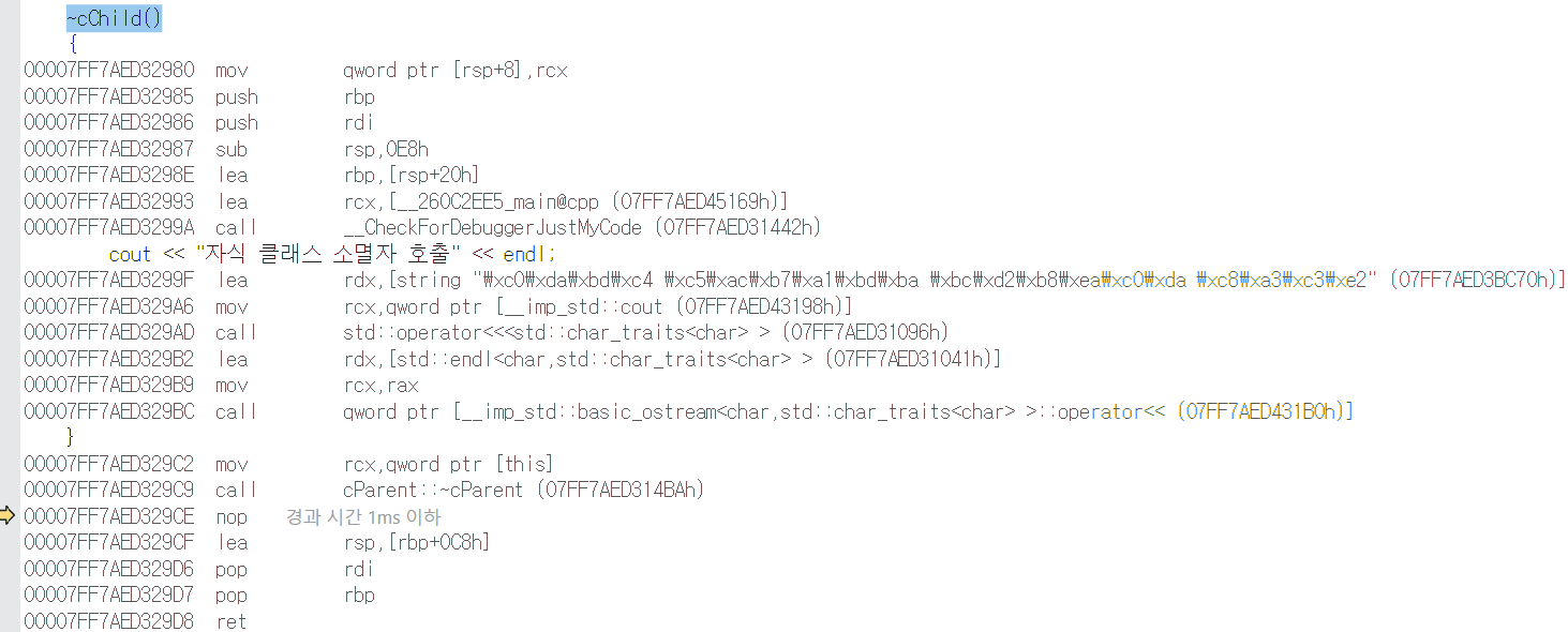 디스어셈블리 창에서 소멸자의 동작을 확인해 보면