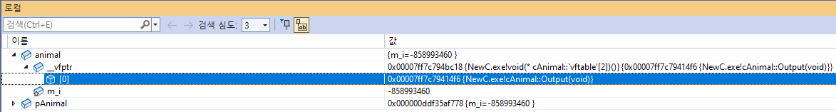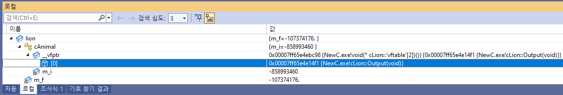 사자 객체의 가상 함수 테이블을 확인하겠죠?