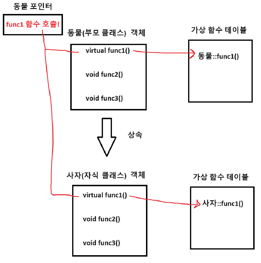 이러한 문제점을 보완해 주는 것이 가상 함수이죠.