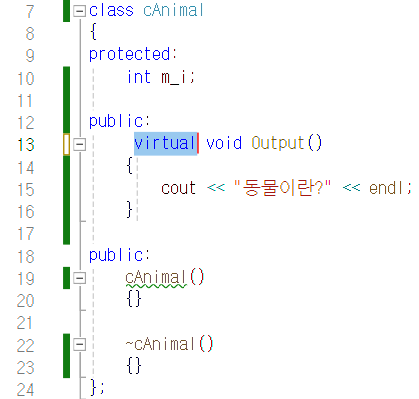 동물 클래스에 있는 Output 함수가 호출됩니다.