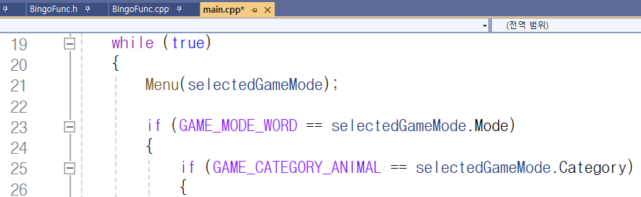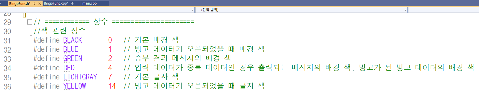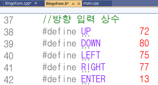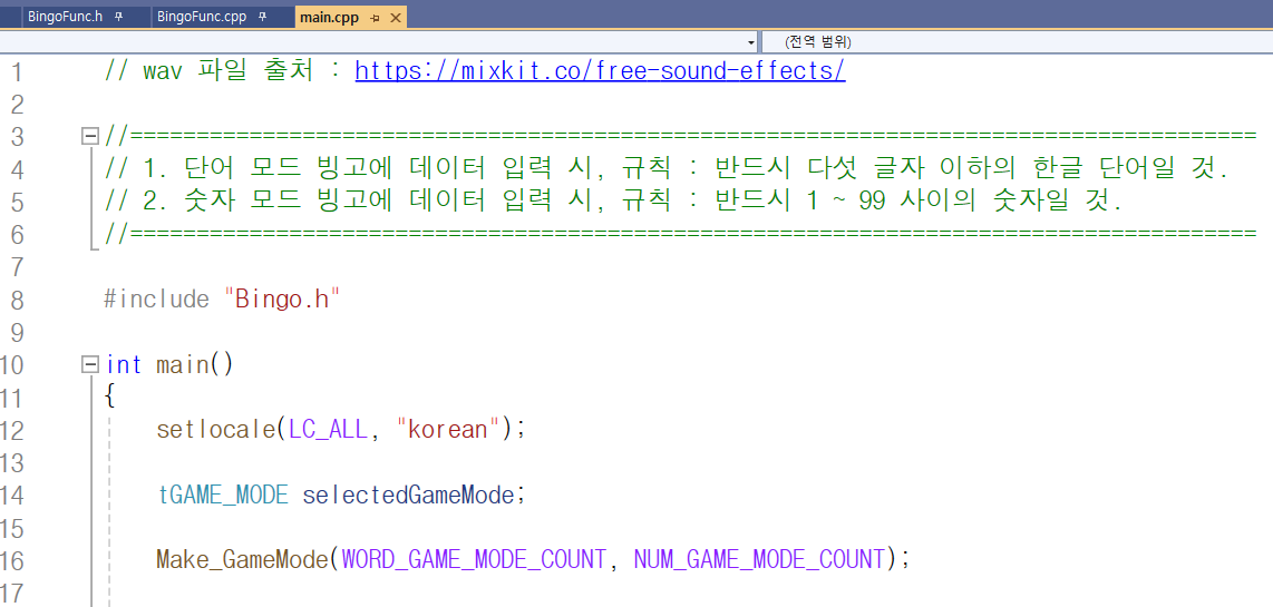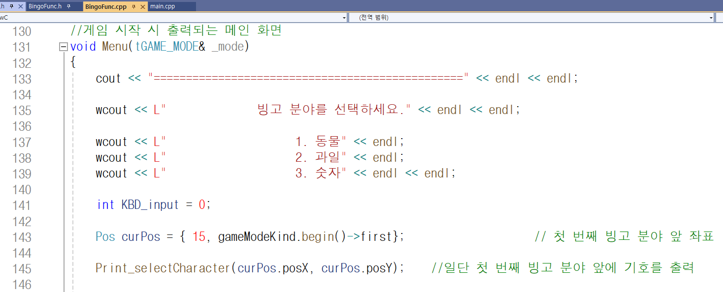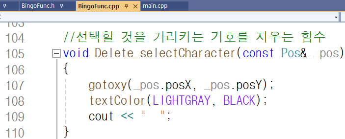 포함된 'Bingo.h' 파일, main.cpp 파일과 Bingo.h 파일에서