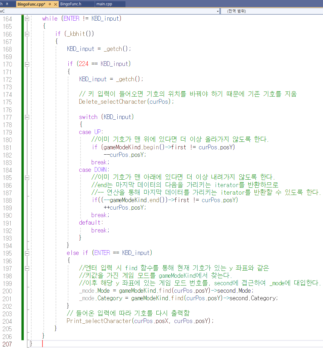 엔터를 입력하면 195번째 줄에 있는 else if 문이 실행됩니다.