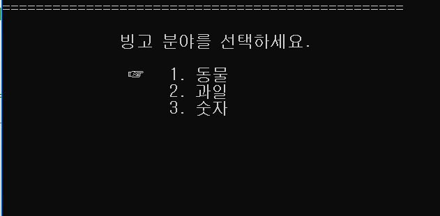 고를 수 있는 빙고 카테고리는 3개가 있습니다.