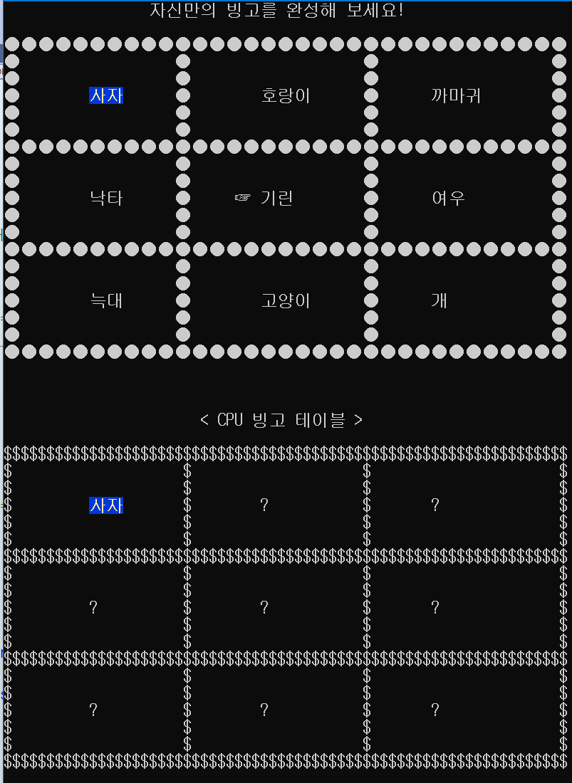 시작되는데 먼저 CPU 빙고가 하나 오픈이 되며 플레이어는