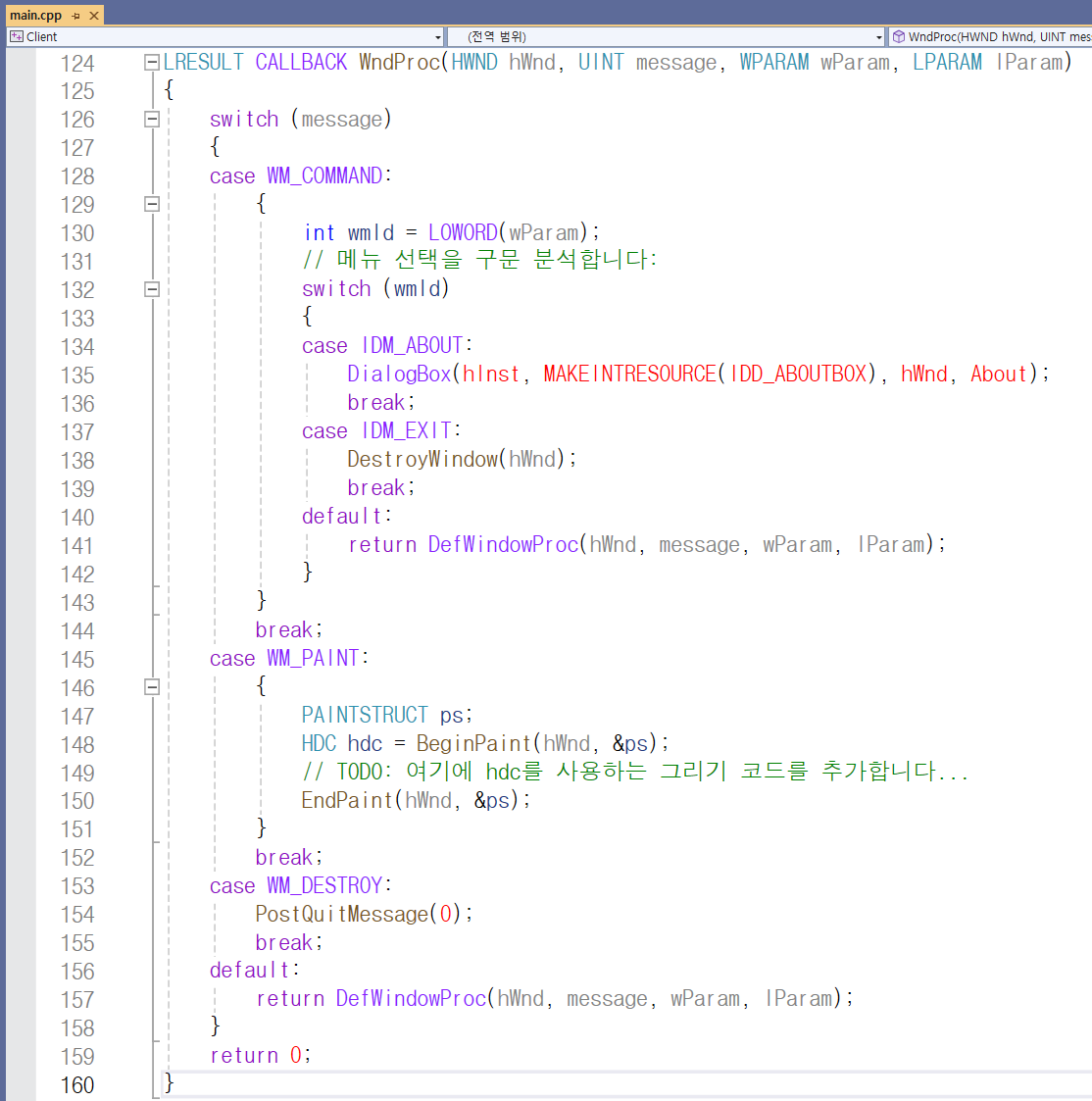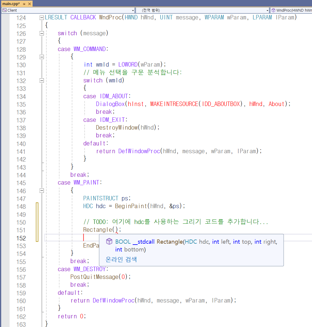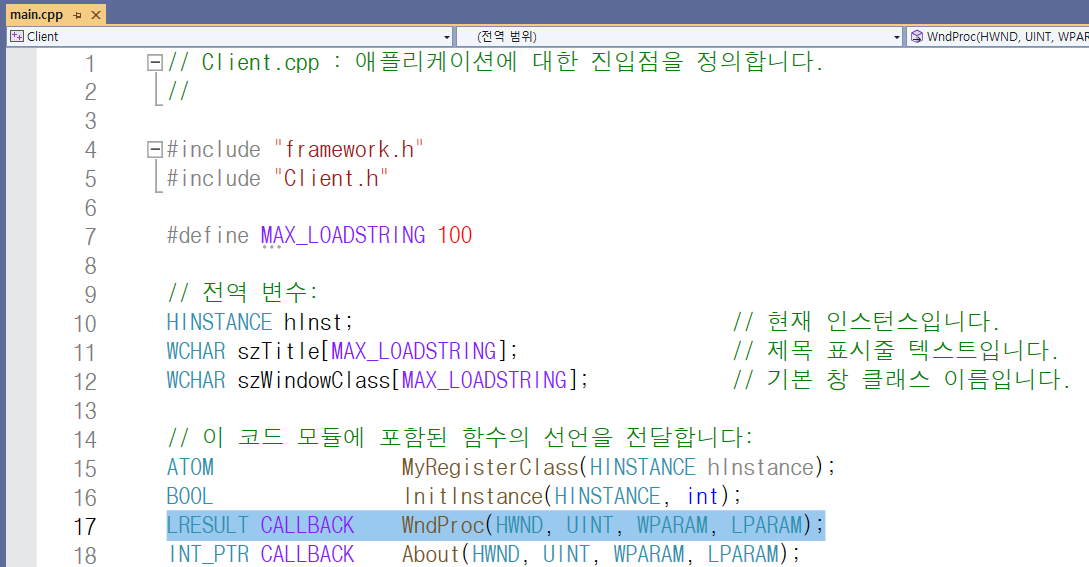 WndProc는 main 함수가 있는 파일에서 볼 수 있듯이