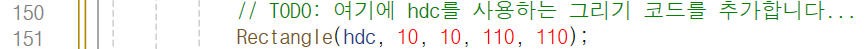 정말 사각형이 윈도우에 그려진 모습을 확인할 수 있습니다.