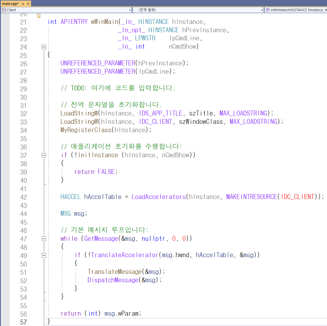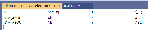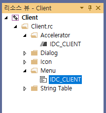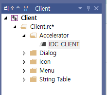 Accelerator에서 IDC_CLIENT를 더블클릭하면