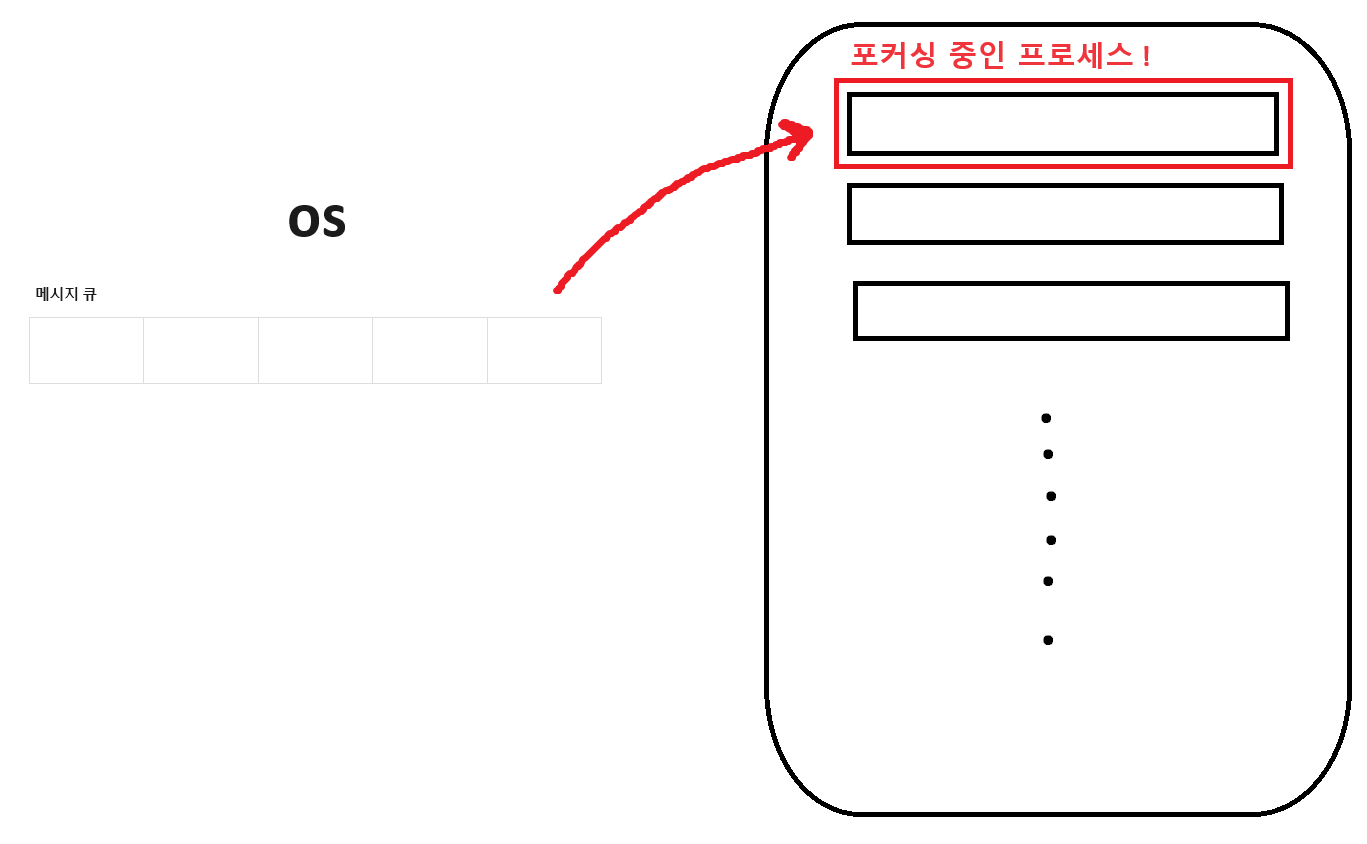 그래서 프로세스는 이러한 메시지 큐에 있는