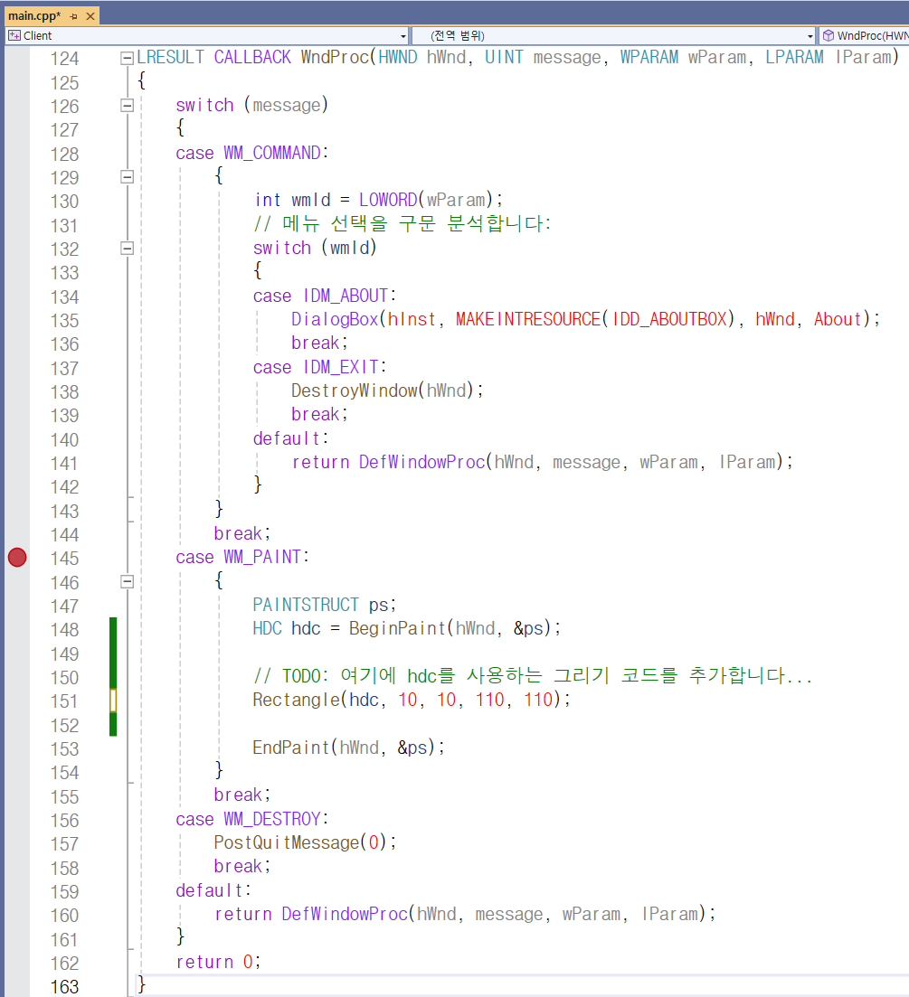 다시 WndProc 함수에서 WM_PAINT 코드로 돌아와서