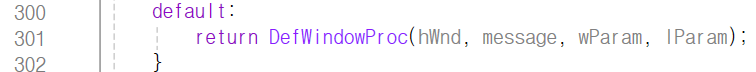 DefWindowProc(기본 메시지 처리기)를 실행하게 되며