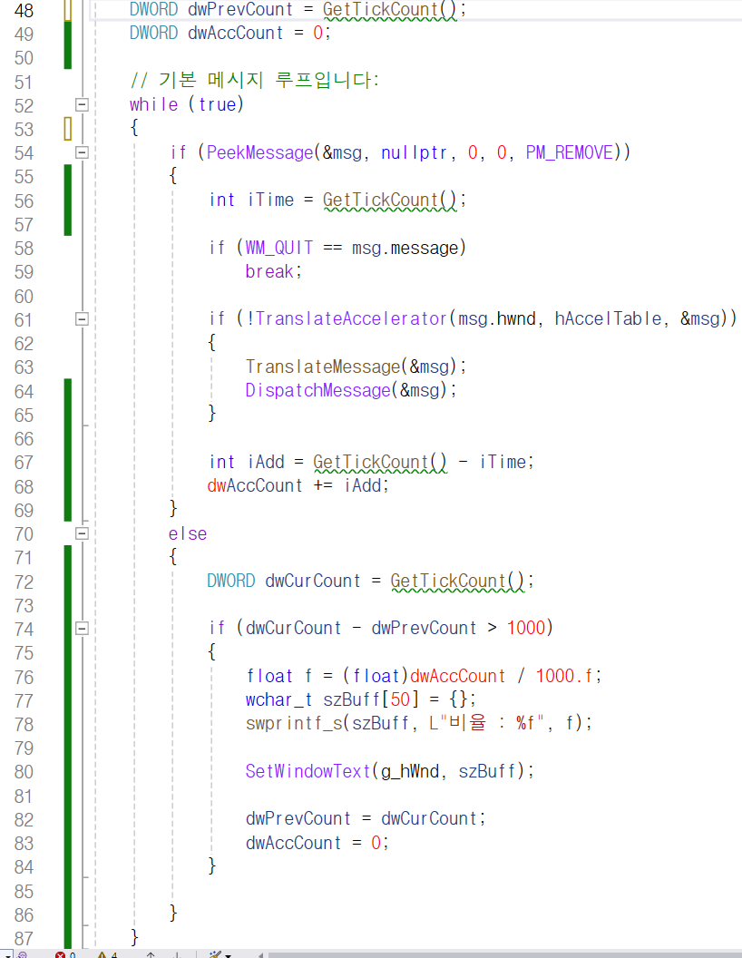 72번째 줄에 있는 dwCurCount에