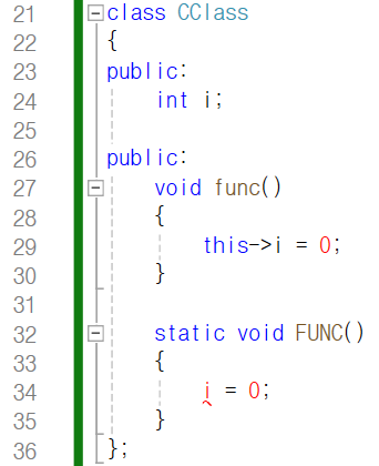 대신 static 멤버 함수는 this가 존재하지 않도록