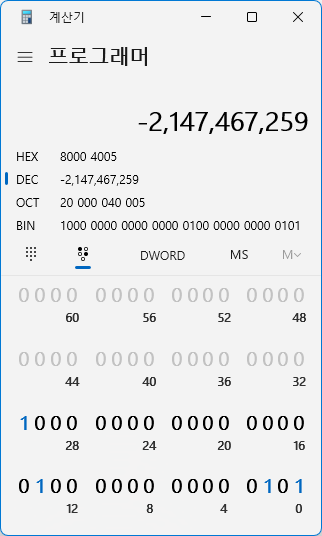 2진수로 확인해 보면 음수인 것을 알 수 있습니다.
