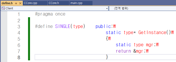 define.h 파일에 SINGLE이라는 매크로 함수를 만들었습니다.