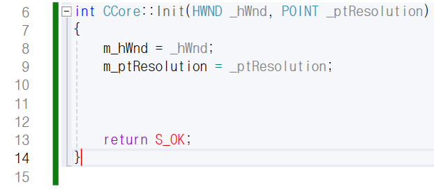 Init 함수의 정의는 CCore.cpp 파일에 합니다.