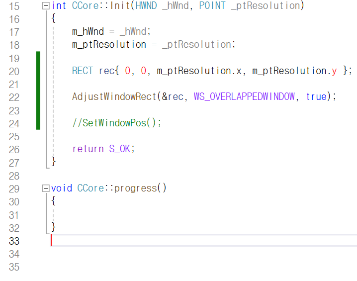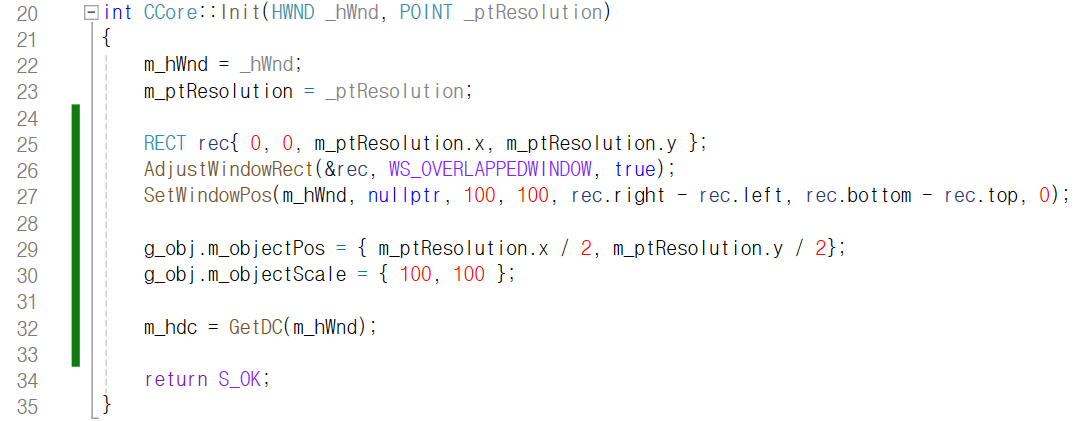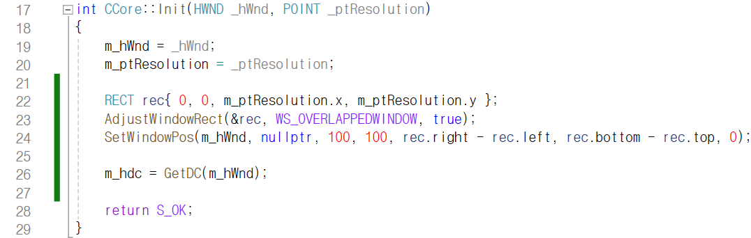 CCore 클래스로 만든 싱글톤 객체의 멤버 함수 Init이 호출되면