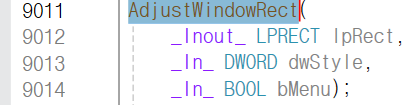 넣는 것은 어렵기 때문에 AdjustWindowRect 함수를 통해