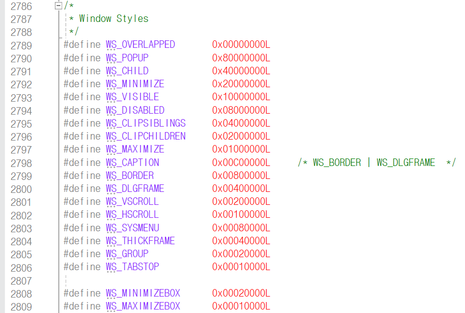 그 중 WS_OVERLAPPEDWINDOW는