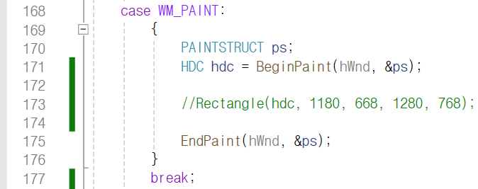 WM_PAINT case에 173번째 줄에 보이는
