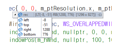 LPRECT 자료형인데 확인해 보면