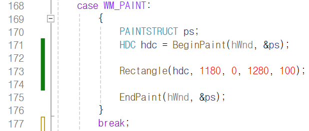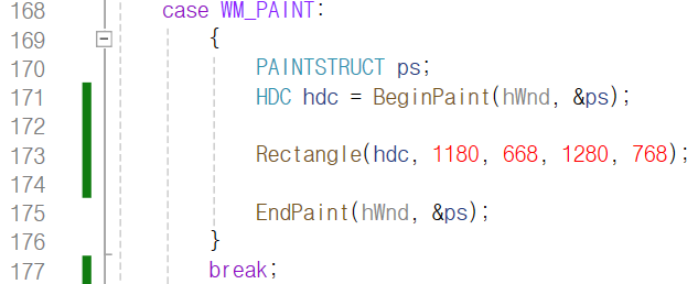 사각형을 그리기 위해 WndProc 함수의