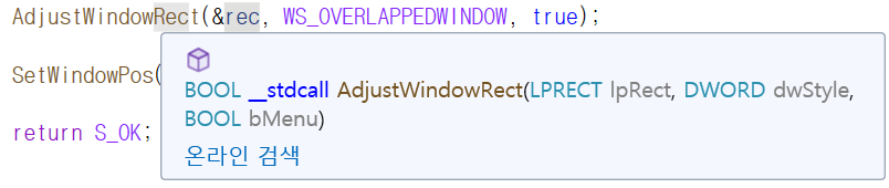 좋은 점은 AdjustWindowRect 함수에 옵션을