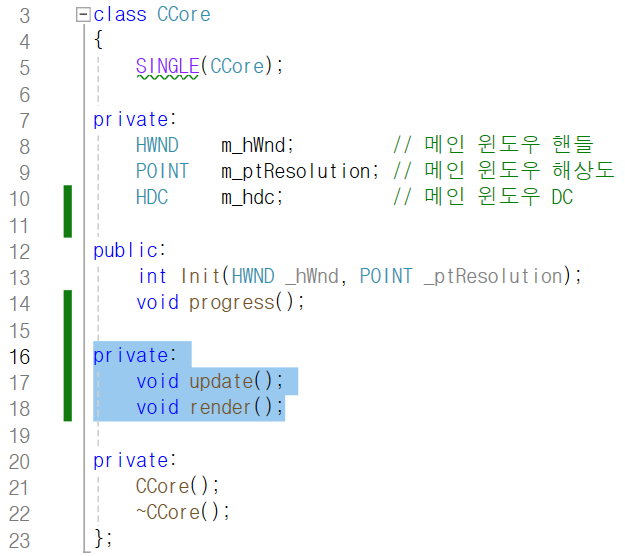 위 두 함수는 CCore 클래스에서만 사용되기 때문에
