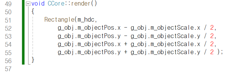 위치를 바꿀 수 있는 사각형을 그리기 위해서는 객체가 하나 필요하겠죠.
