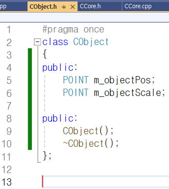 그 안에 CObject라는 클래스를 만들었습니다.