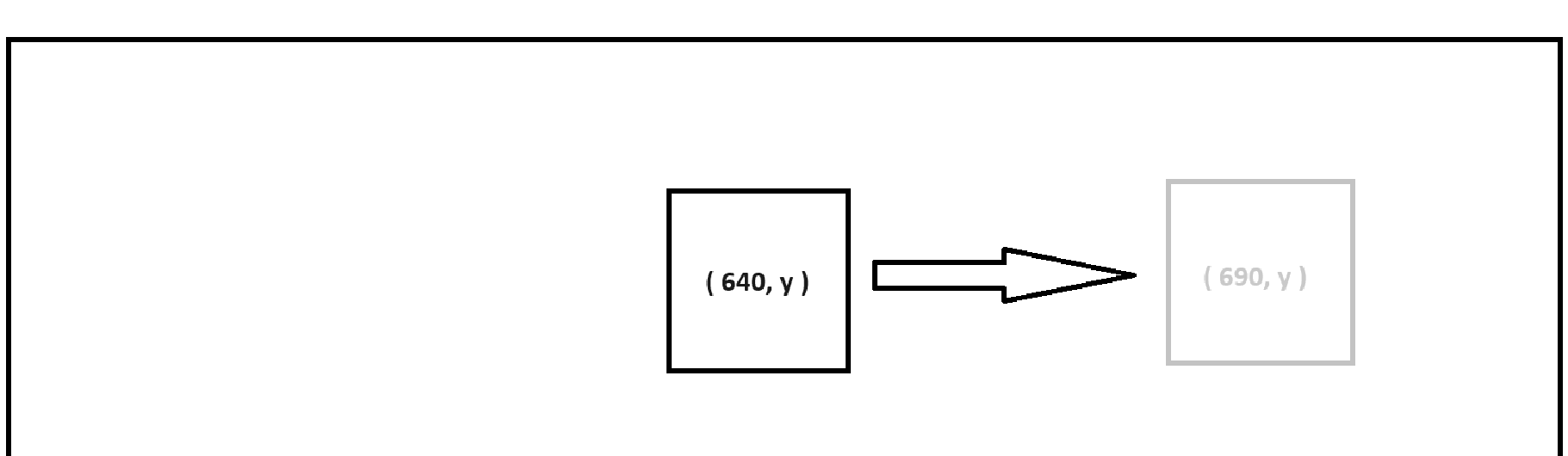 왼쪽으로 50만큼 이동하여 검은색 사각형 위치에 도달하겠죠.