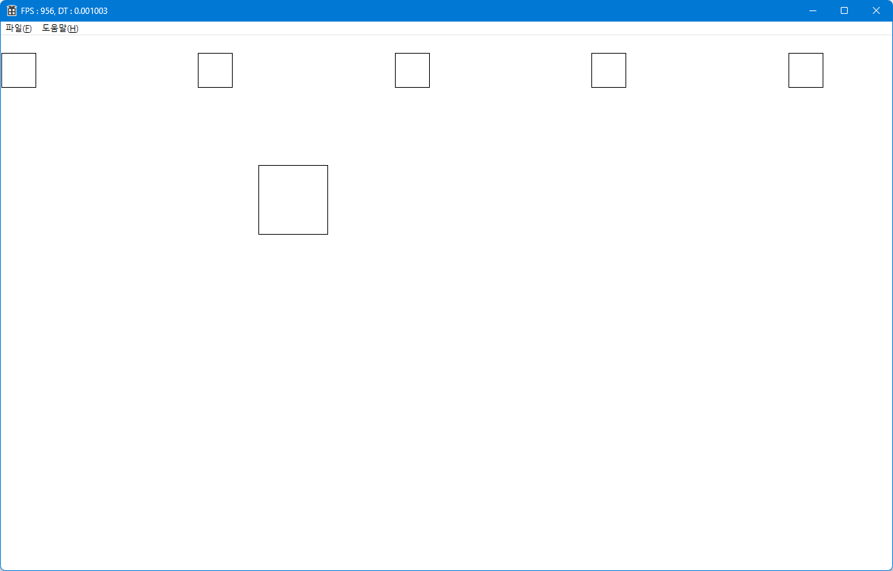 키 입력을 통해 플레이어(큰 사각형)를 움직일 수 있음을