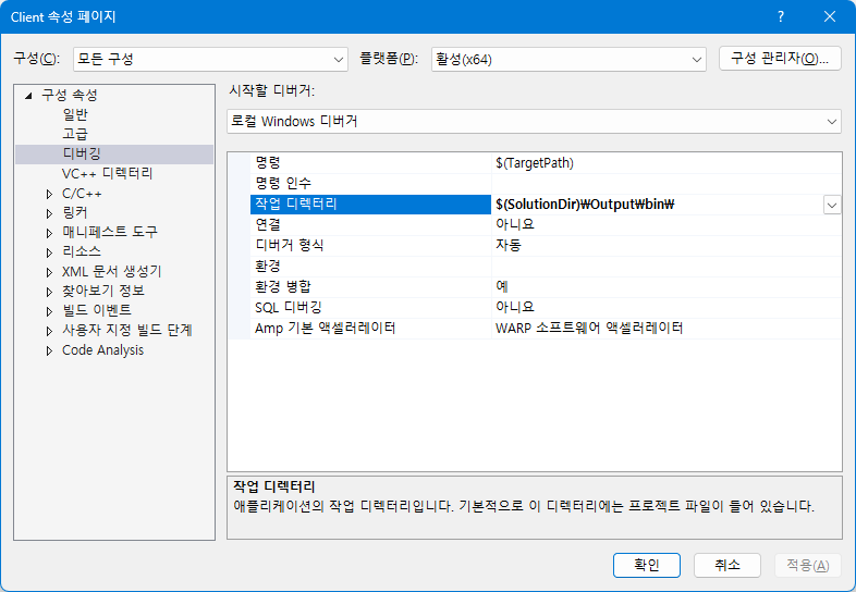 이때 구성은 모든 구성으로 설정해 주어야 합니다.