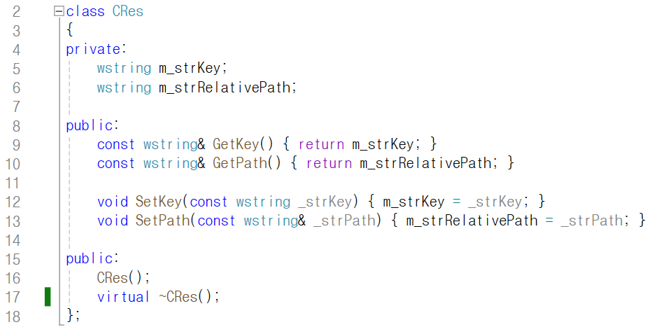 우선 모든 리소스는 CRes 클래스를 상속받고 있습니다.