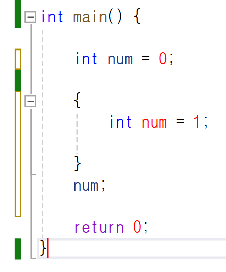 이 중괄호 사이의 int형 변수 num이 선언되었습니다.