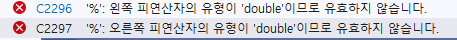 나머지 연산자는 반드시 정수끼리 사용해야 합니다.