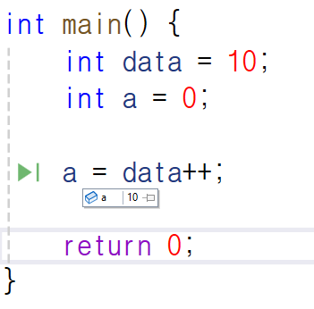 즉, 변수 a에 변수 data의 값인 10이 먼저 대입되고 그 다음에 data의 값을 1 올리는 것입니다.